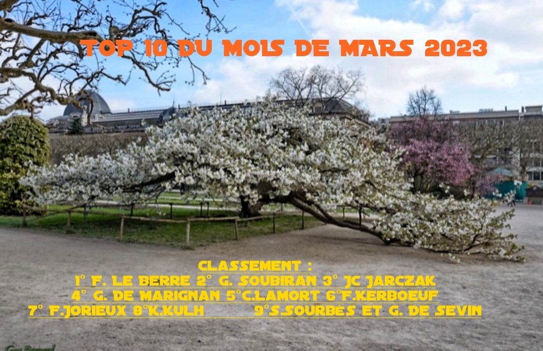 Félicitations à F. Le Berre qui remporte le top 10 de ce mois, mais aussi à Gil De Marignan nouveau venu qui finit 4° et à Françoise Jorieux 7° mais avec seulement 3 participations sur 4 ce mois.