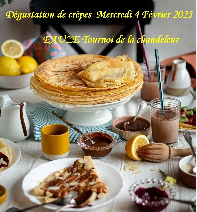 Tous à vos poêles pour le lancer de crêpes, mercredi 4 Février après le tournoi de la Chandeleur on se retrouve autour de bonnes crêpes et de bouteilles de cidre.