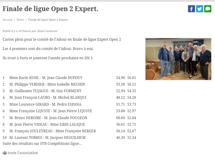 En route vers Paris , le club d'Eauze a encore brillé grâce à nos 2 champions Karin Kuhl et Jean Claude Dupouy.